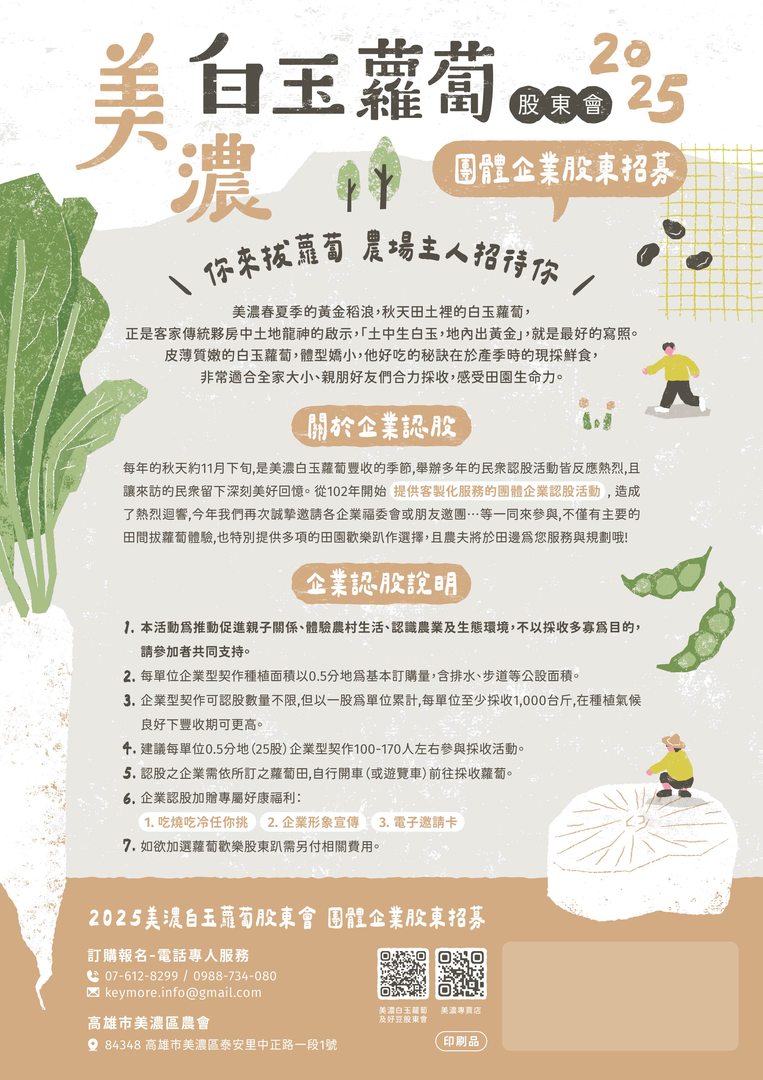 協助美濃區農會「2025美濃白玉蘿蔔還有好豆季」活動宣傳!