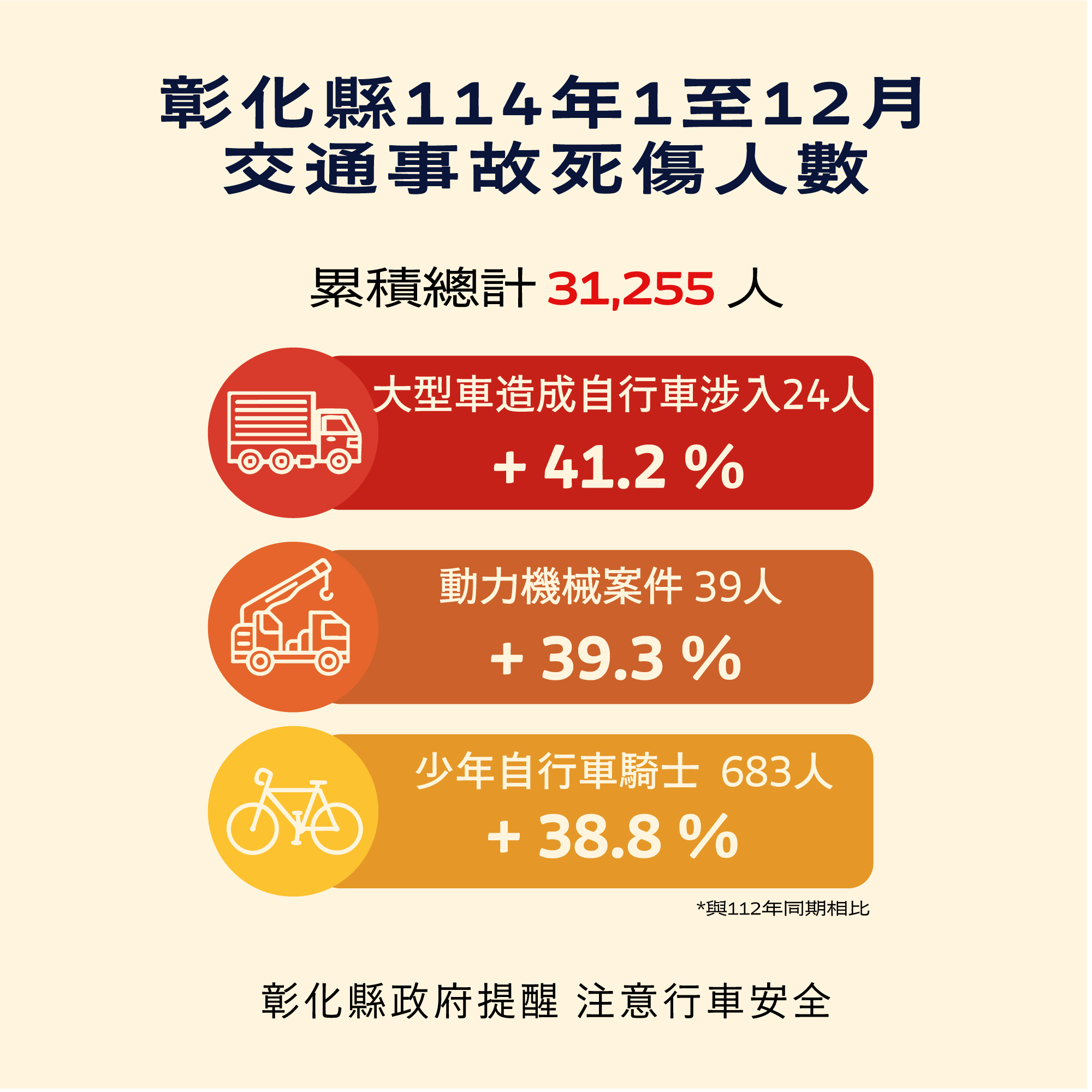 114年1-12月道路交通事故 彰化縣事故死傷累計31,255人